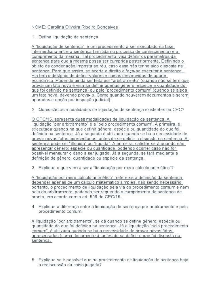 5. Explique se é possível que no procedimento de liquidação de sentença haja