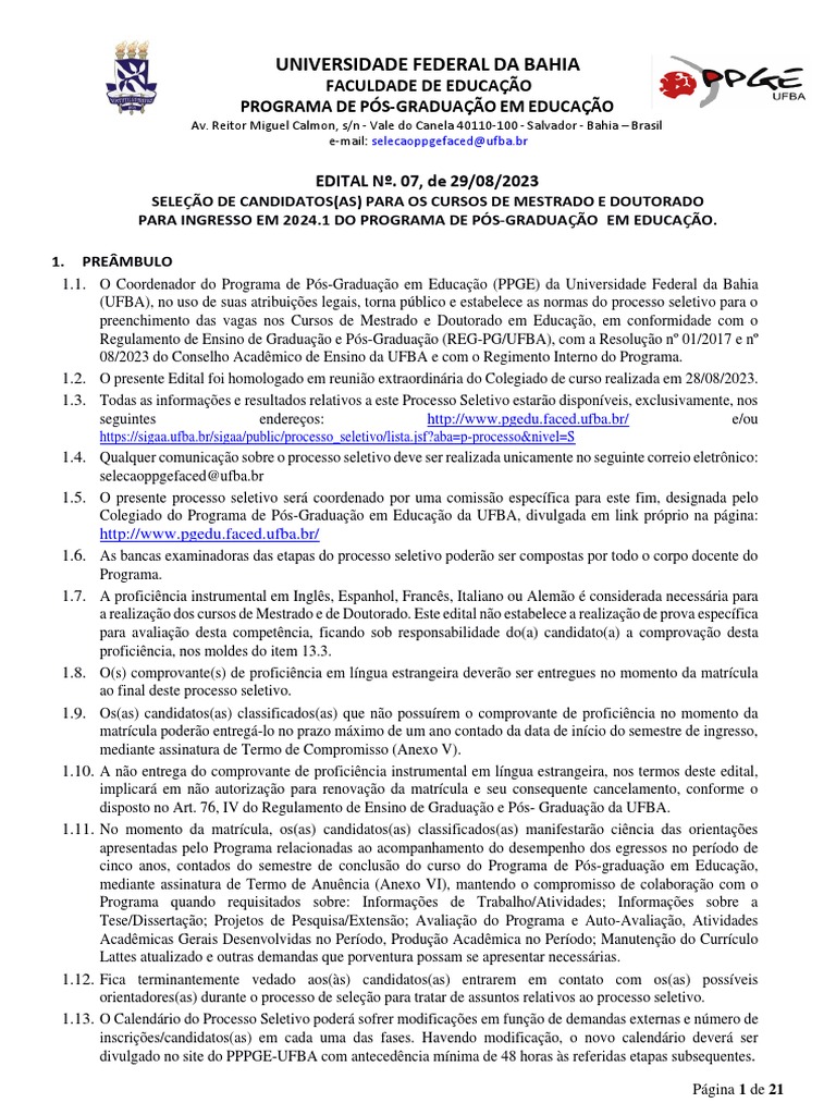PPGE/UFBA, os(as) candidatos(as) devem consultar a página do Programa: [Link]