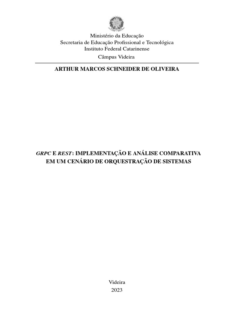 GRPC E REST: IMPLEMENTAÇÃO E ANÁLISE COMPARATIVA