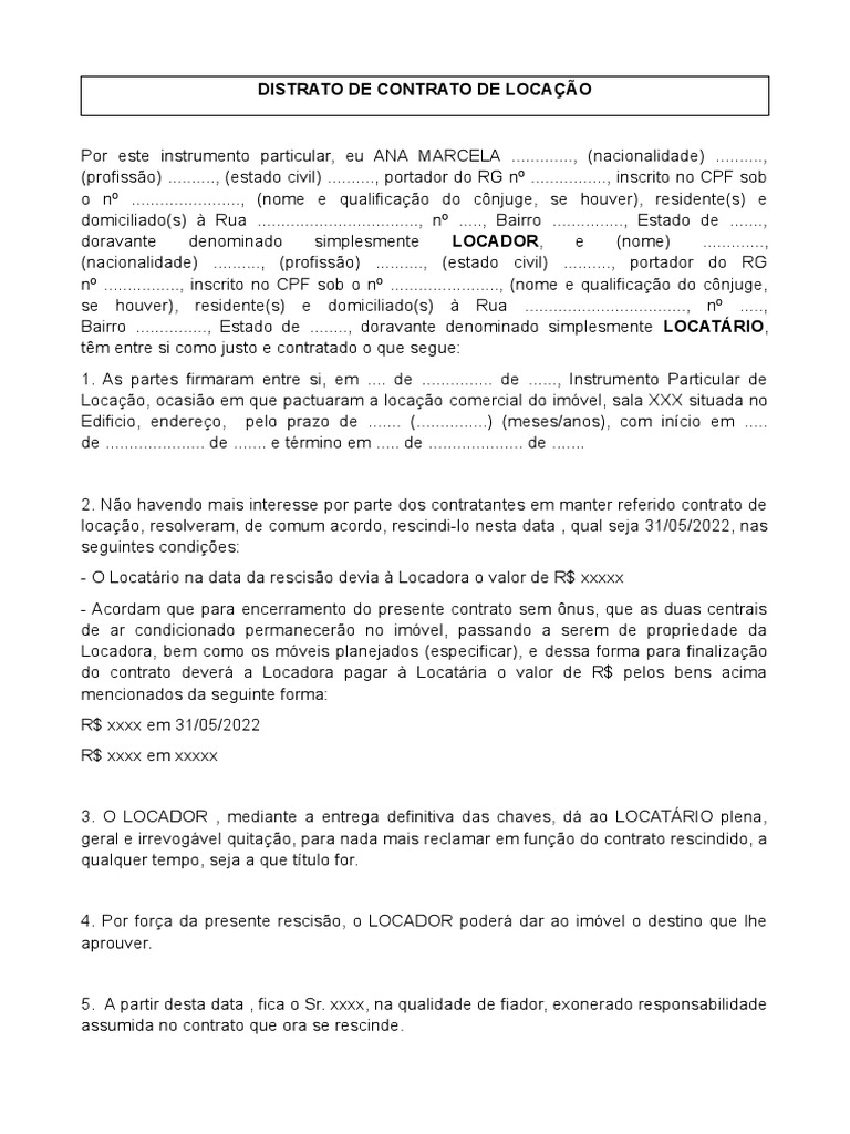 locação, resolveram, de comum acordo, rescindi-lo nesta data , qual seja 31/05/2022, nas