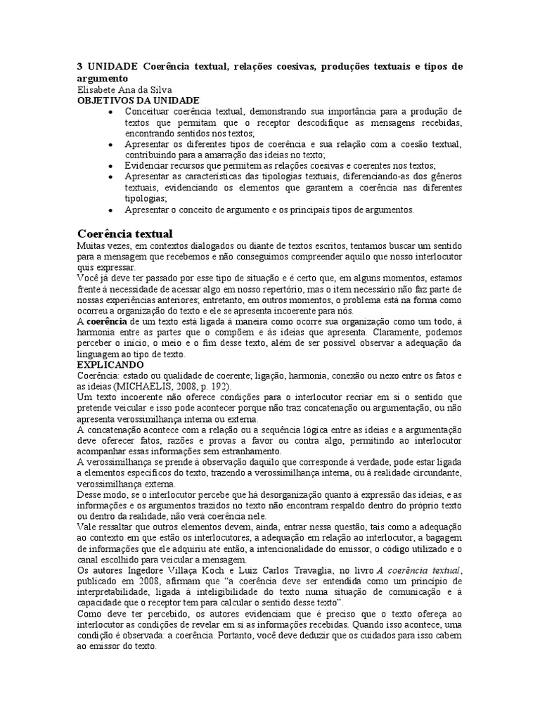 3 UNIDADE Coerência textual, relações coesivas, produções textuais e tipos de