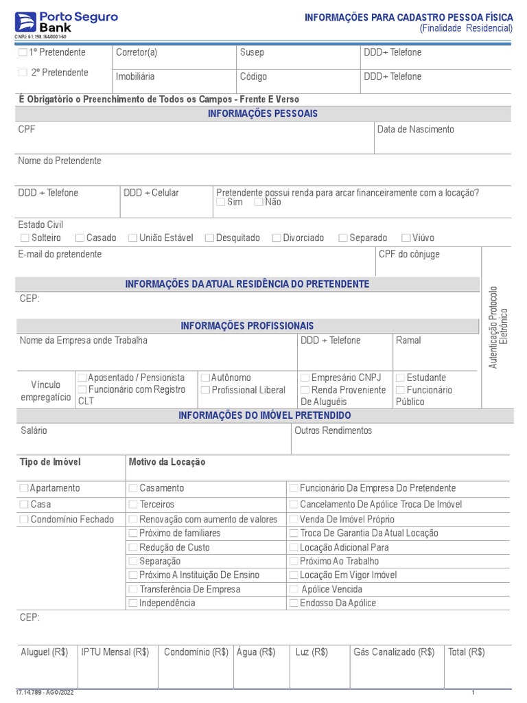 Formulario Fiança Locaticia PF