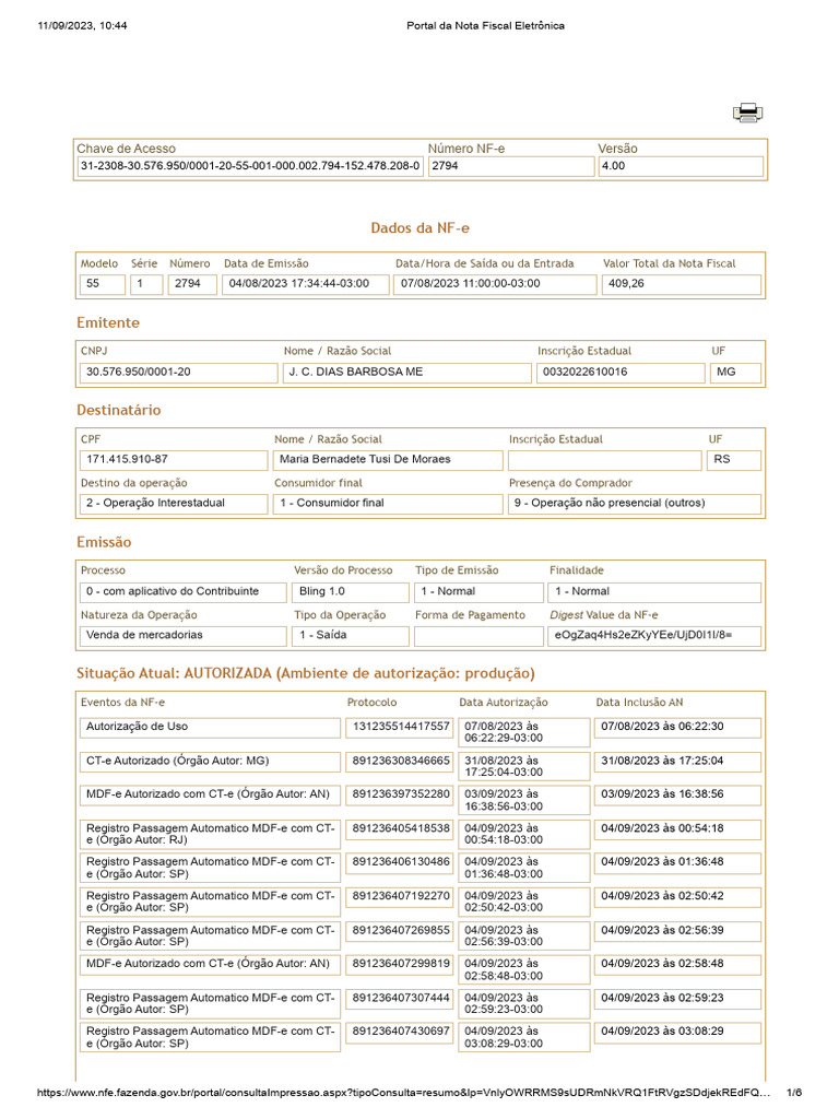 11/09/2023, 10:44 Portal da Nota Fiscal Eletrônica