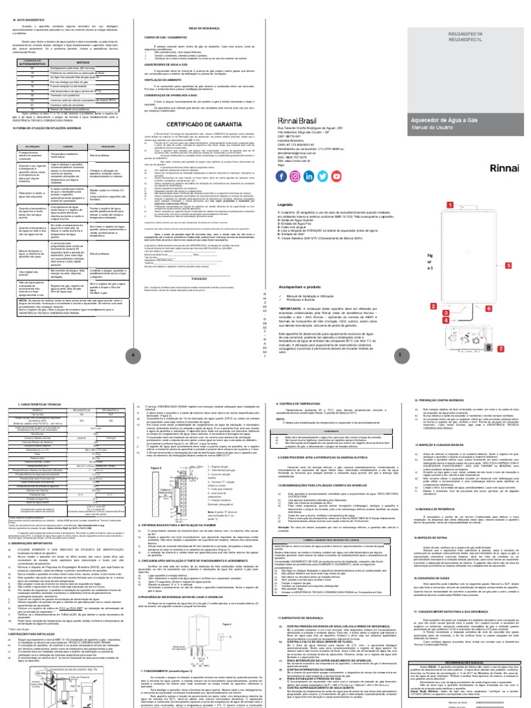 A Rinnai Brasil Tecnologia de Aquecimento Ltda., oferece GARANTIA do aparelho acima indicado,