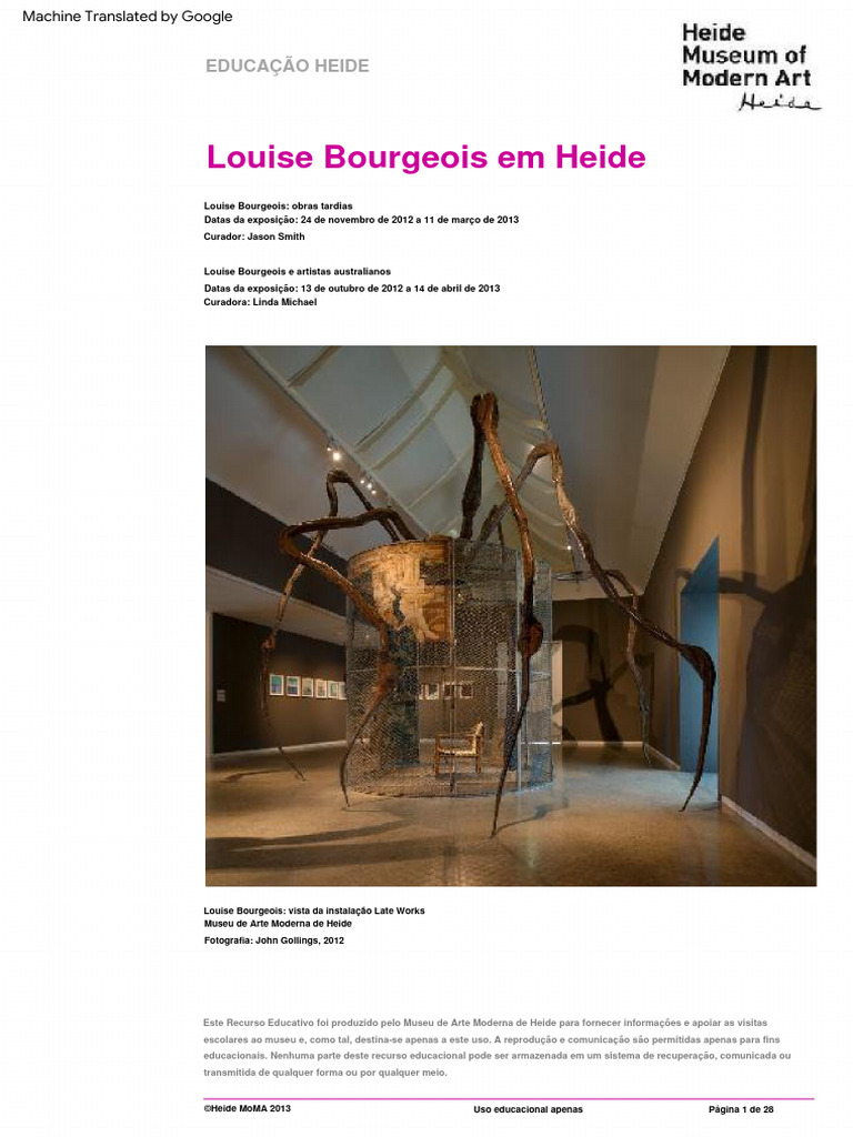 levantamento significativo do trabalho de Bourgeois na Austrália. A primeira foi organizada pela National Gallery of Victoria