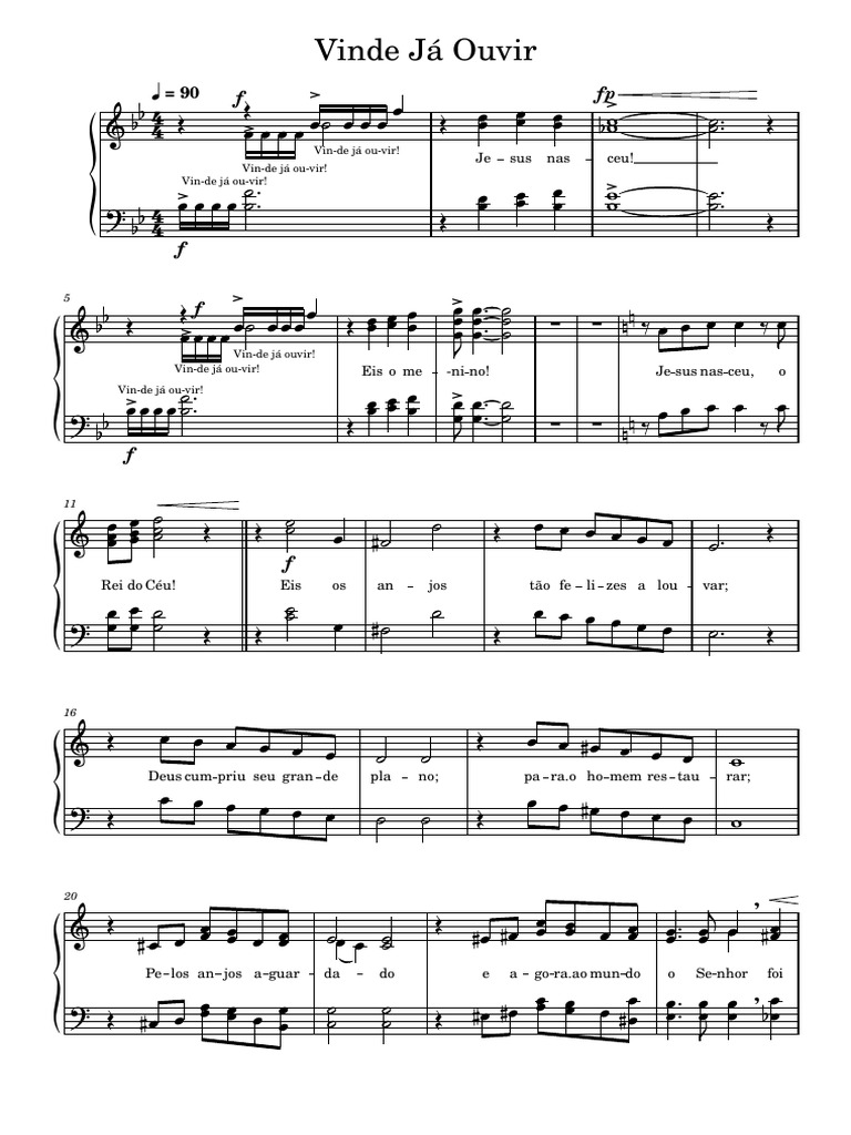 Vin-de já ou-vir! Eis o me -ni no! Je sus nas ceu, o