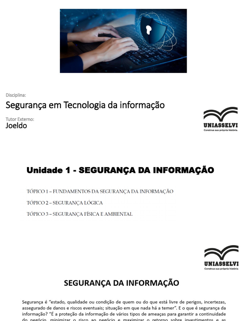Unidade 1 - SEGURANÇA DA INFORMAÇÃO