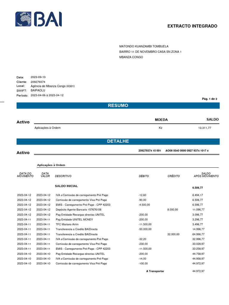 2023-04-12 2023-04-12 Pag Entidade Recargas directas UNITEL -200,00 3.096,77
