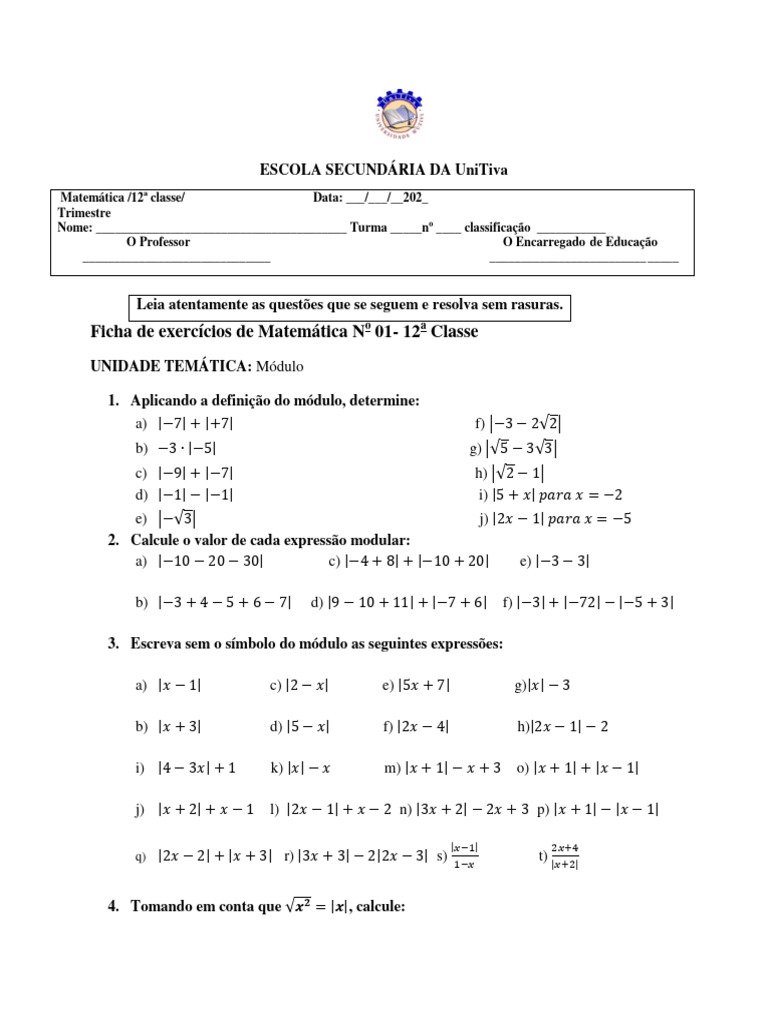 3. Escreva sem o símbolo do módulo as seguintes expressões: