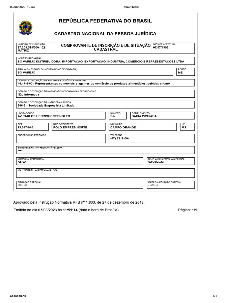 Emitido no dia 03/08/2023 às [Link] (data e hora de Brasília). Página: 1/1