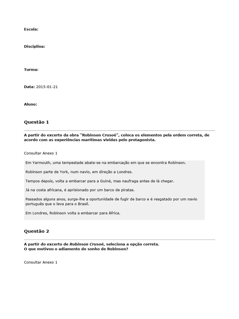 A partir do excerto de Robinson Crusoé, identifica as diversas ideias manifestadas pelas