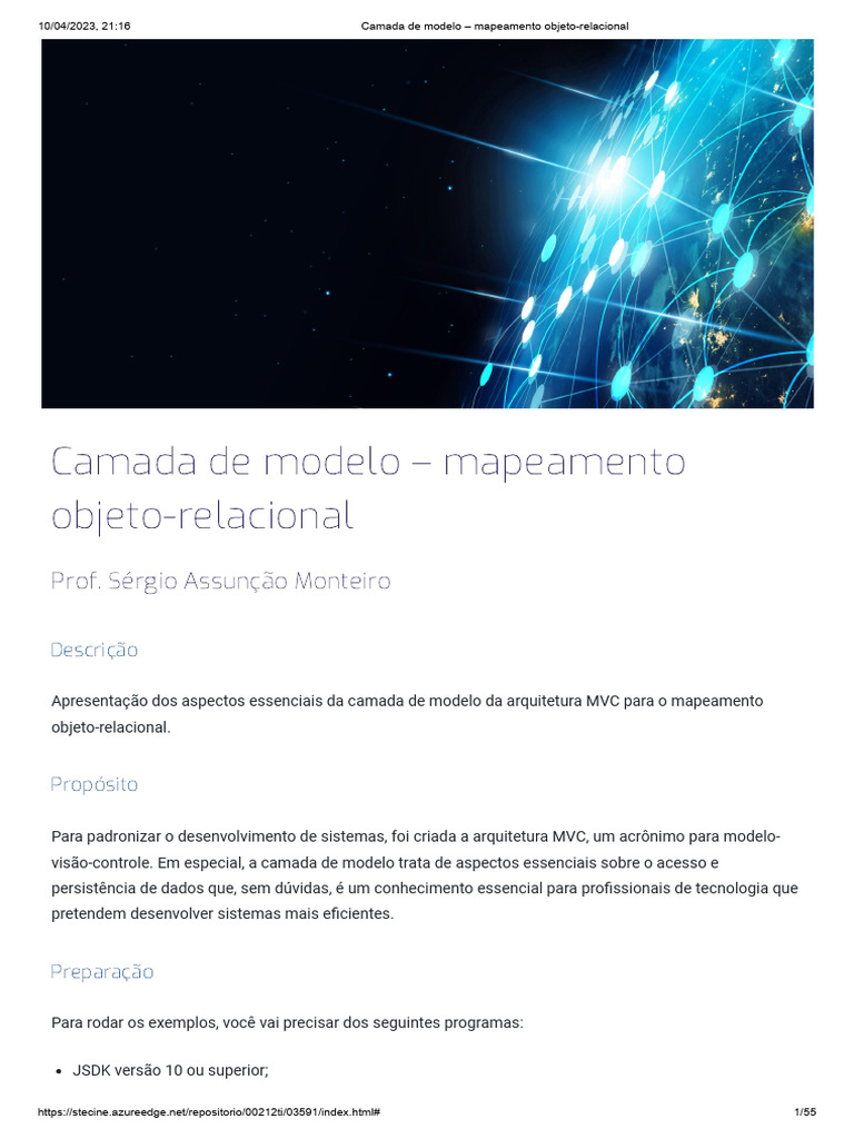 10/04/2023, 21:16 Camada de modelo – mapeamento objeto-relacional