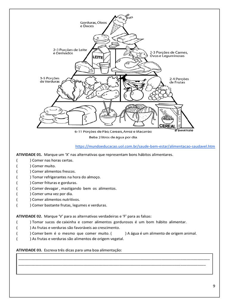 ATIVIDADE 06. De acordo com a pirâmide alimentar precisamos ter uma alimentação equilibrada para termos saúde,
