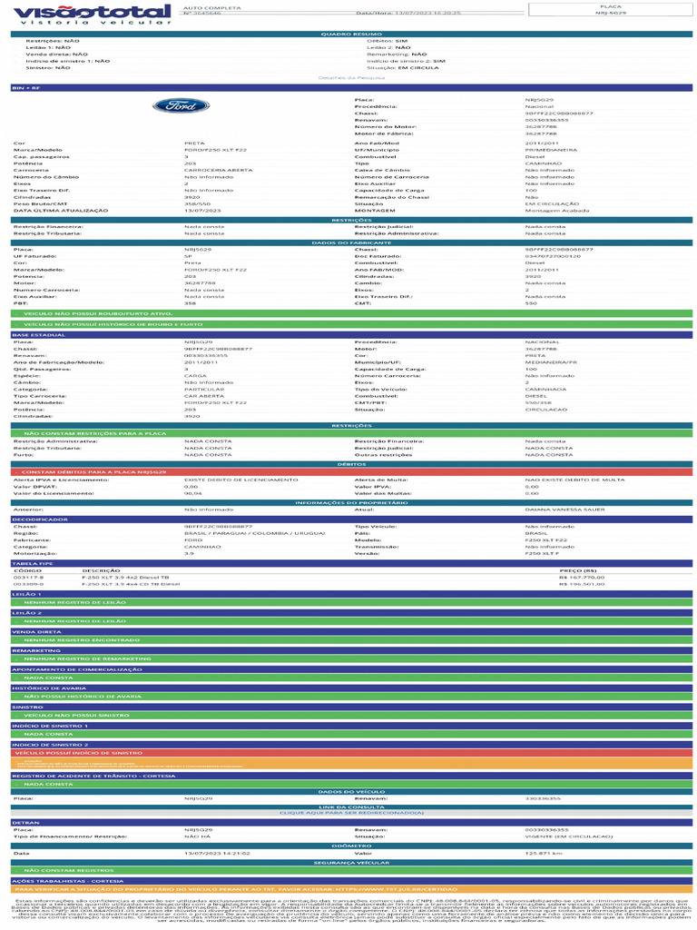 Relatório Completo do Veículo VW/CROSSFOX