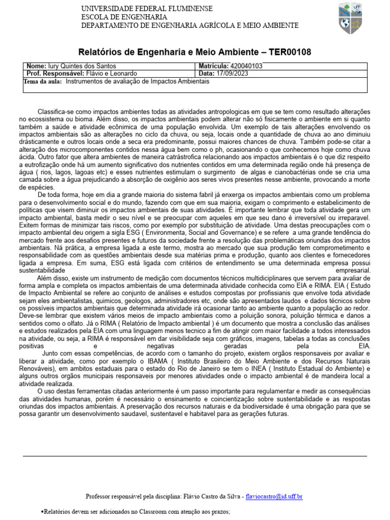 Relatórios de Engenharia e Meio Ambiente – TER00108