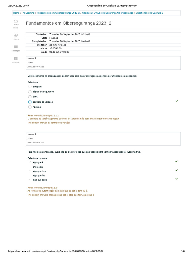 28/09/2023, 09:47 Questionário do Capítulo 2: Attempt review