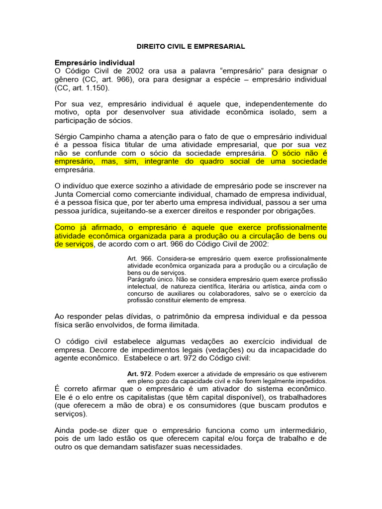 Por sua vez, empresário individual é aquele que, independentemente do