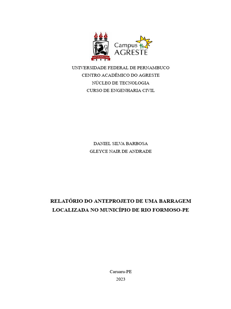 Anteprojeto de Barragem em Rio Formoso