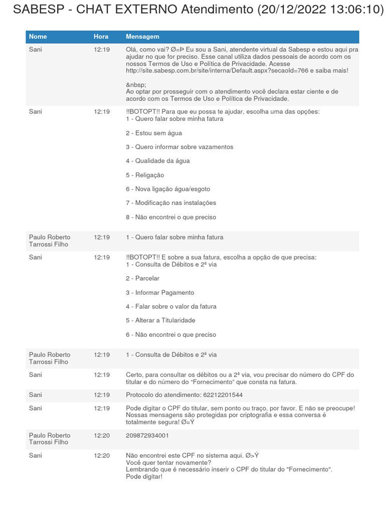 SABESP - CHAT EXTERNO Atendimento (20/12/2022 [Link])