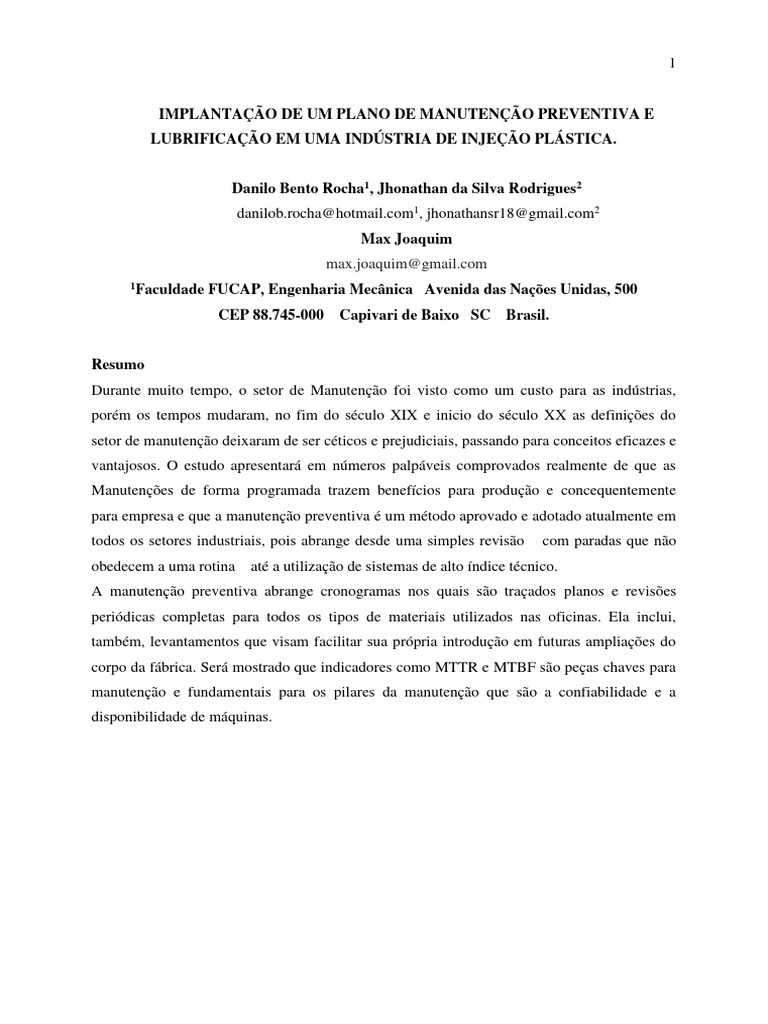 manutenção proposto forem executadas a risca.