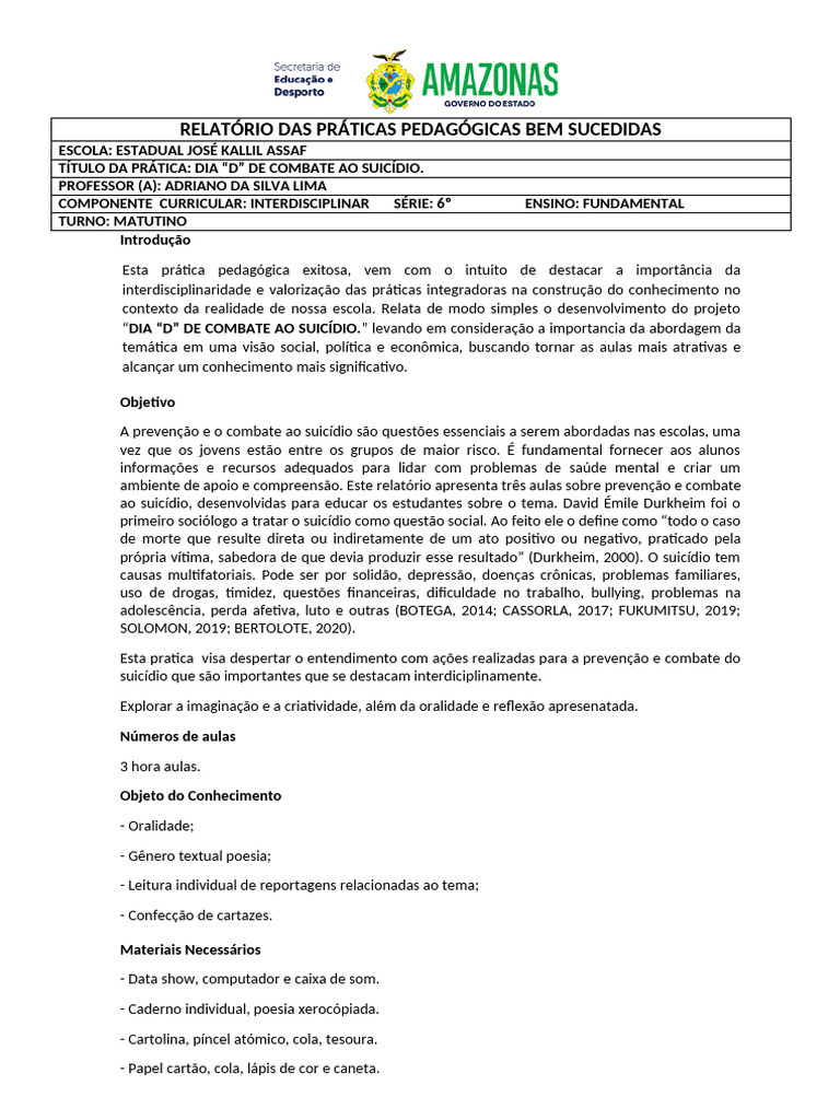 RELATÓRIO DAS PRÁTICAS PEDAGÓGICAS BEM SUCEDIDAS