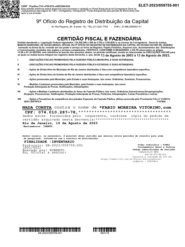 CERTIDÃO FISCAL E FAZENDÁRIA