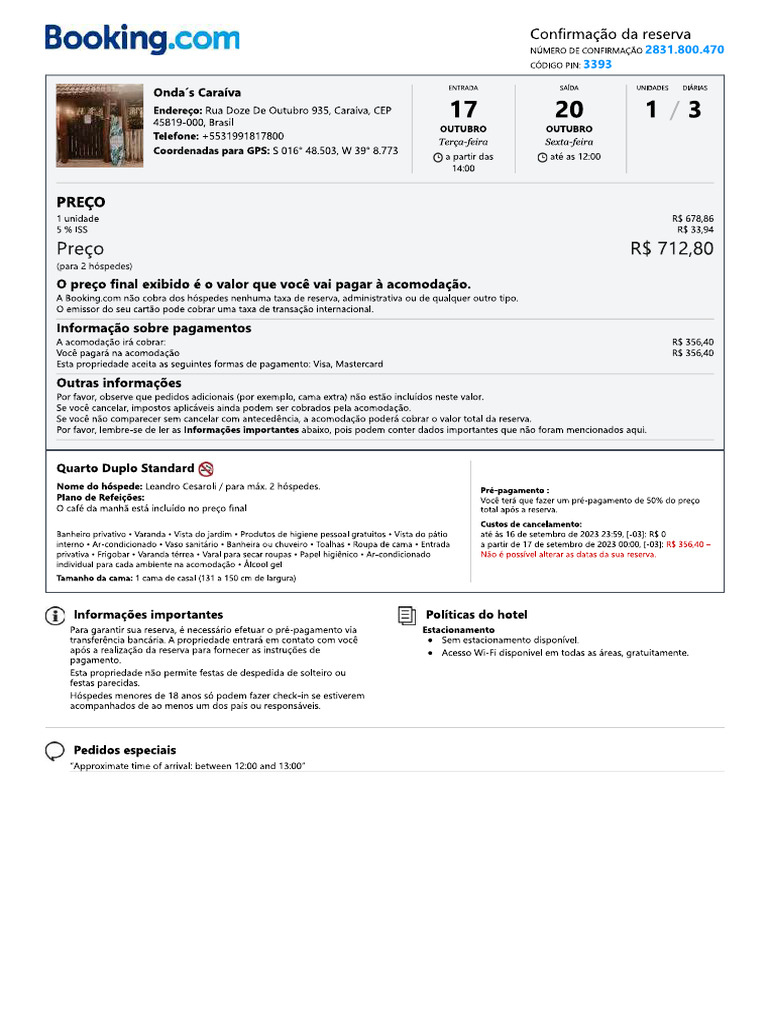 ‘Se Yocénio compatecer sem cancels com antecedénci, a acomodacSo podetscobraro valor ttal da reserva