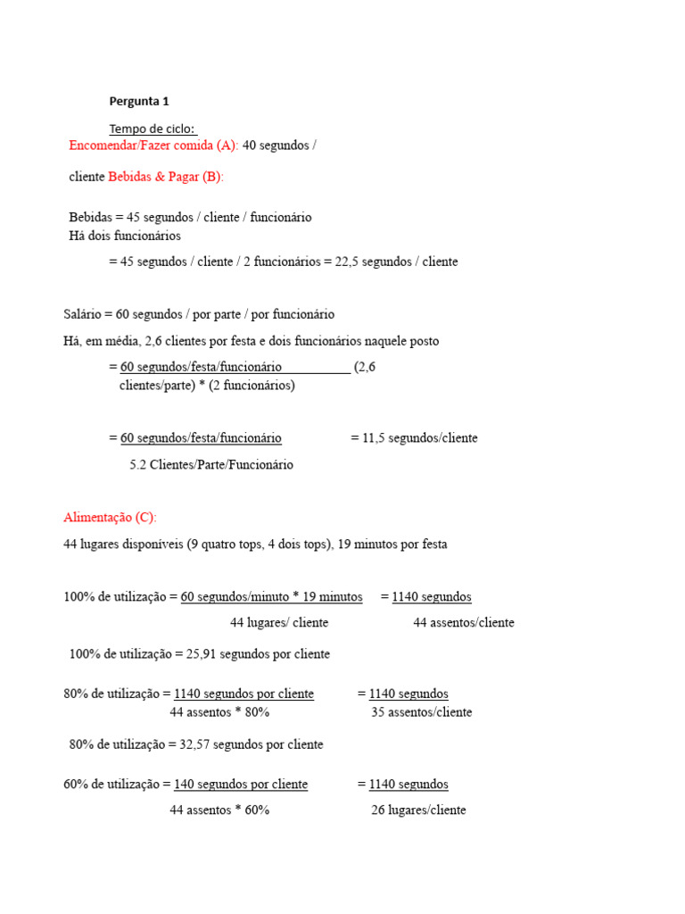 será o pedido em 40 segundos/cliente. Quando o restaurante estiver com 60% de aproveitamento, o