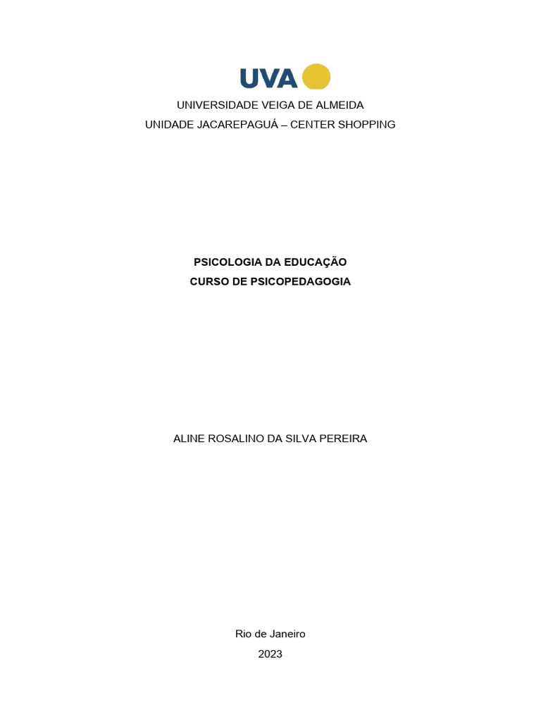 disciplina de Psicologia da Educação.