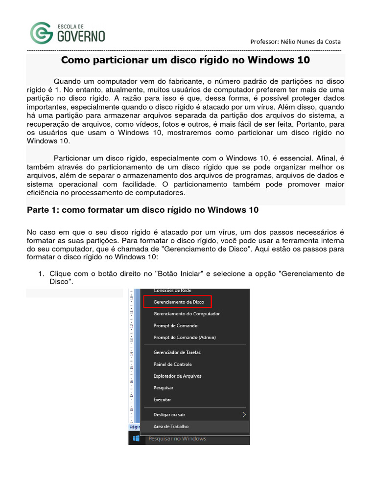 do seu computador, que é chamada de "Gerenciamento de Disco". Aqui estão os passos para
