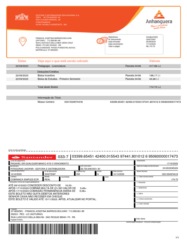 22/09/2023 Pedagogia - Licenciatura Parcela 04/06 417.58 (+)