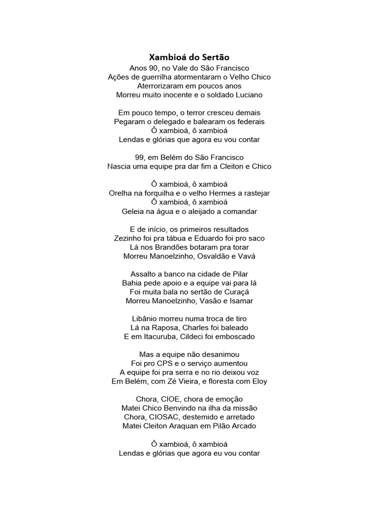 Ô xambioá, ô xambioá