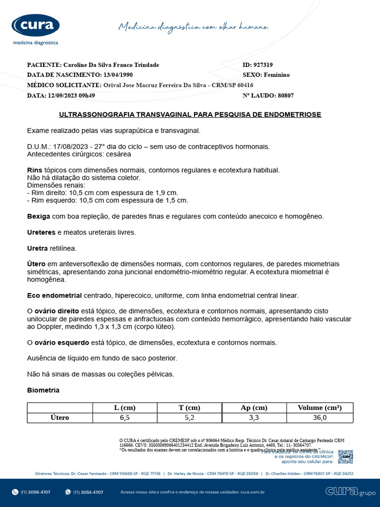 PACIENTE: Caroline Da Silva Franco Trindade ID: 927319