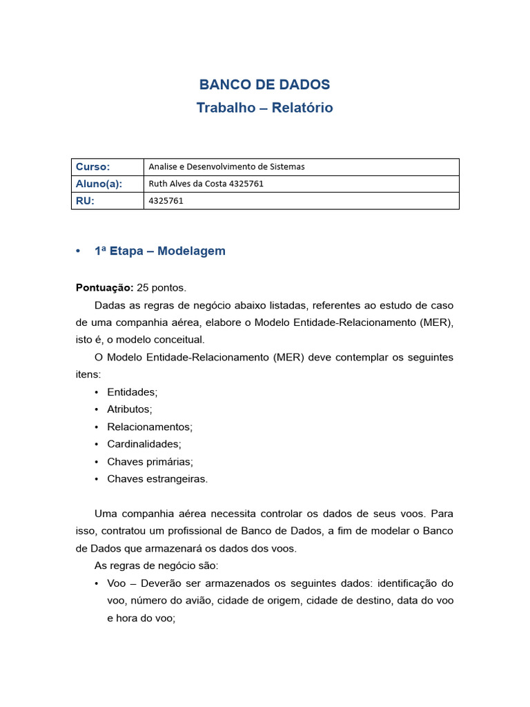 de uma companhia aérea, elabore o Modelo Entidade-Relacionamento (MER),