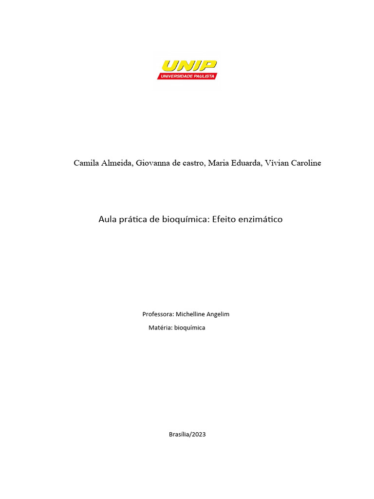 Aula prática de bioquímica: Efeito enzimático