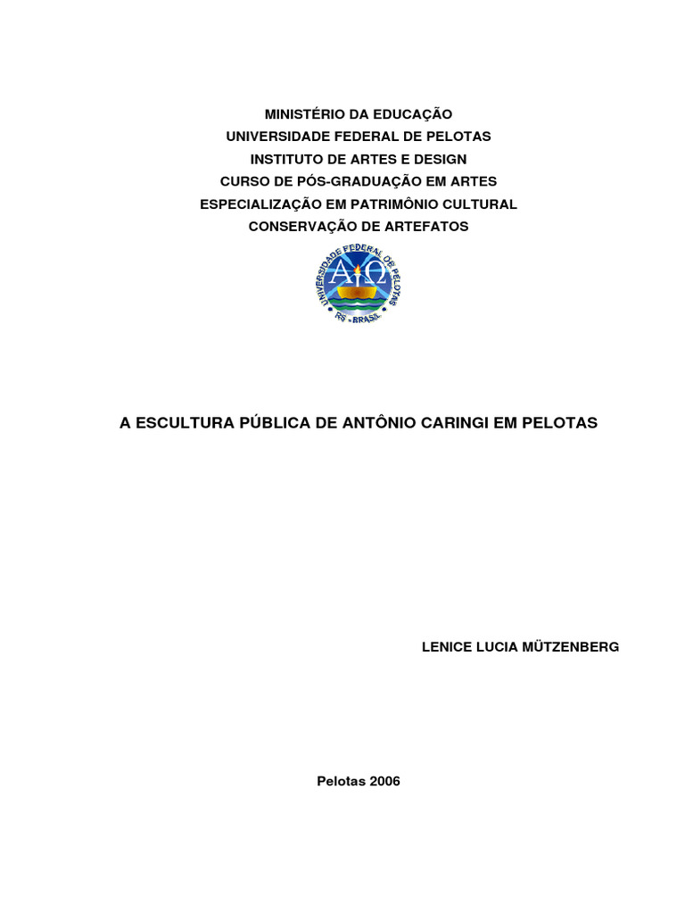 Key-words: public sculture; Pelotas; Caringi.