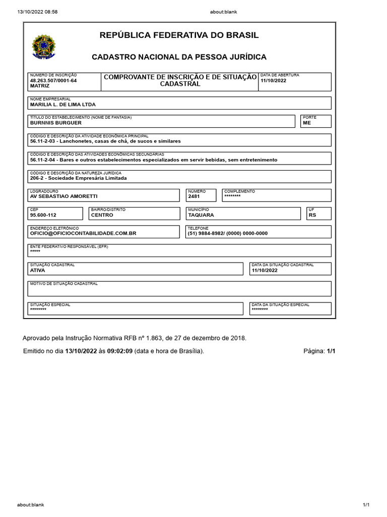 Emitido no dia 13/10/2022 às [Link] (data e hora de Brasília). Página: 1/1