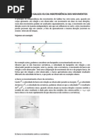 Princípio da Independência dos Movimentos, e é de grande rio, desconsideramos a correnteza.