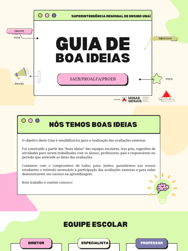 Foi construído a partir das “boas ideias” das equipes escolares, traz pois, sugestões de