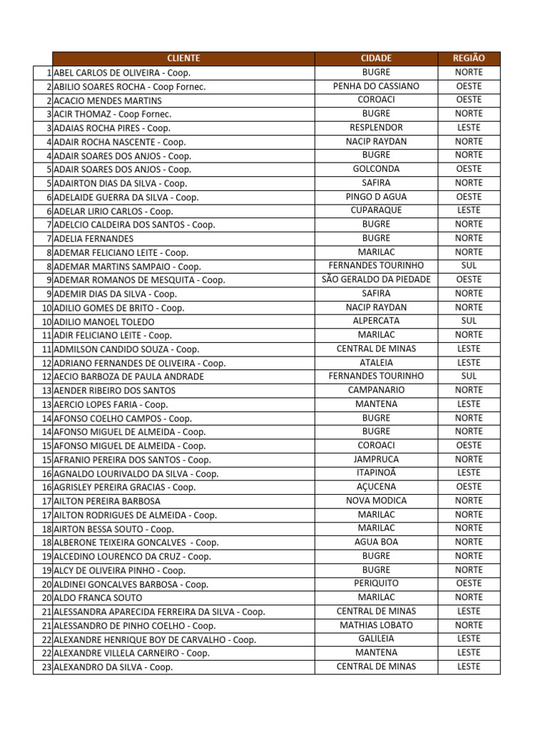 CLIENTE CIDADE REGIÃO