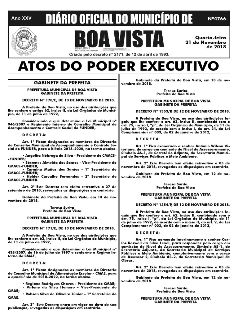 DIÁRIO OFICIAL DO MUNICÍPIO DE BOA VISTA - Nº 4766 21 de Novembro de 2018