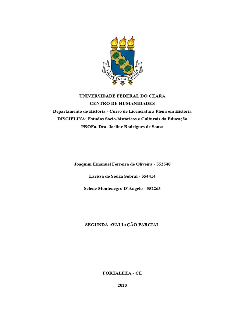 DISCIPLINA: Estudos Sócio-históricos e Culturais da Educação