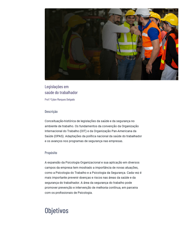 “Legislações em Saúde do Trabalhador”, você já consegue ter uma boa