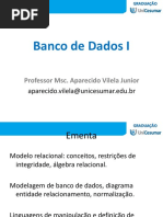 • Diferenciar BANCO e BASE de Dados. Dados (E-R e UML). Modelo de Dados Relacional. Álgebra Relacional