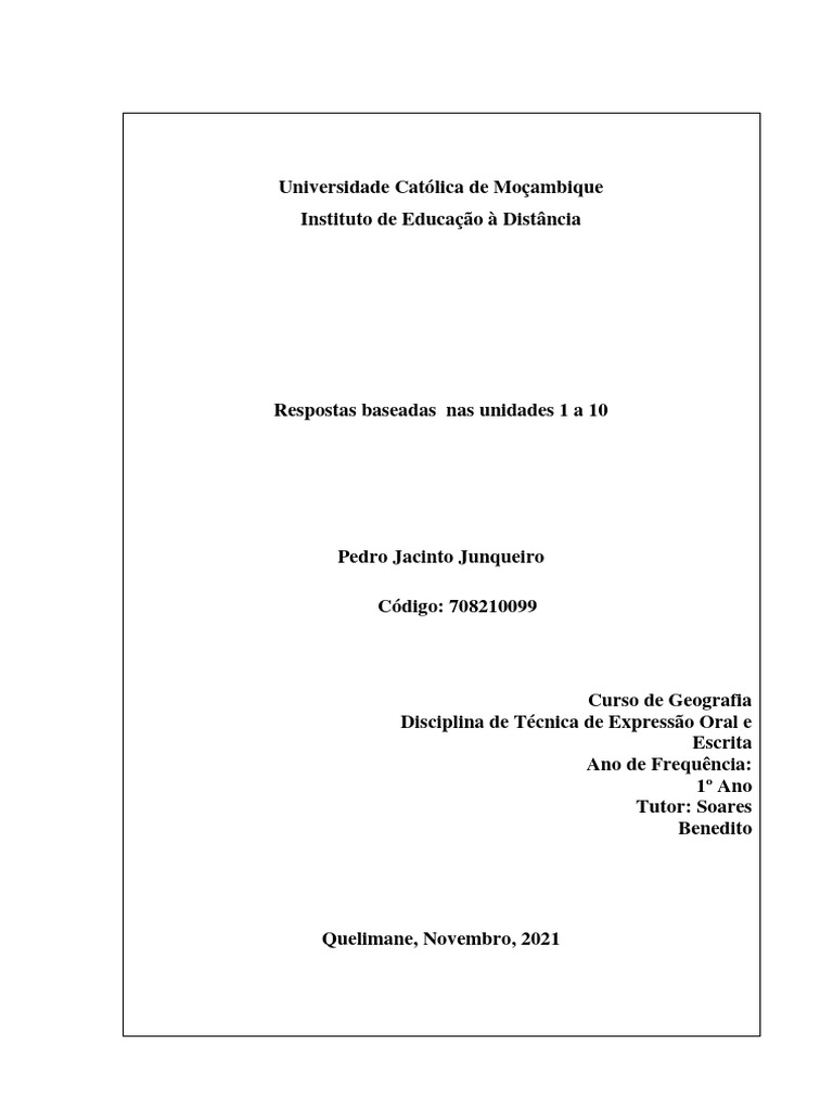 Respostas baseadas nas unidades 1 a 10