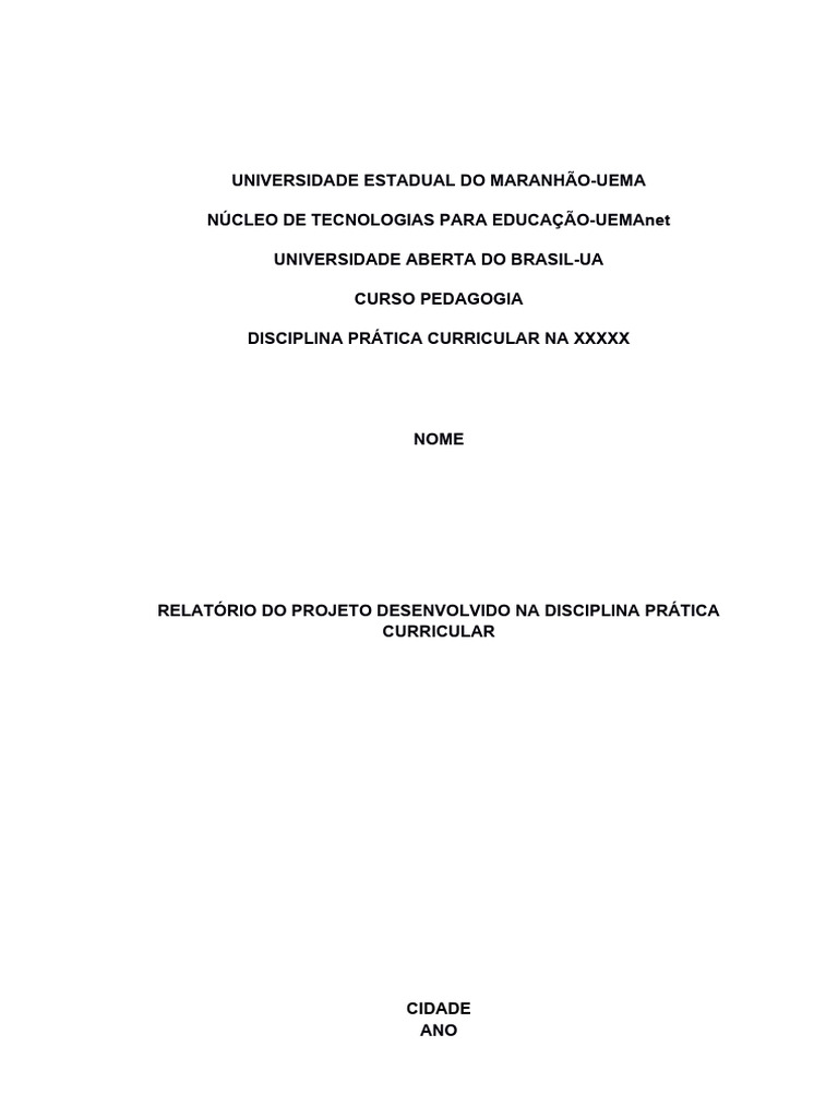DISCIPLINA PRÁTICA CURRICULAR NA XXXXX
