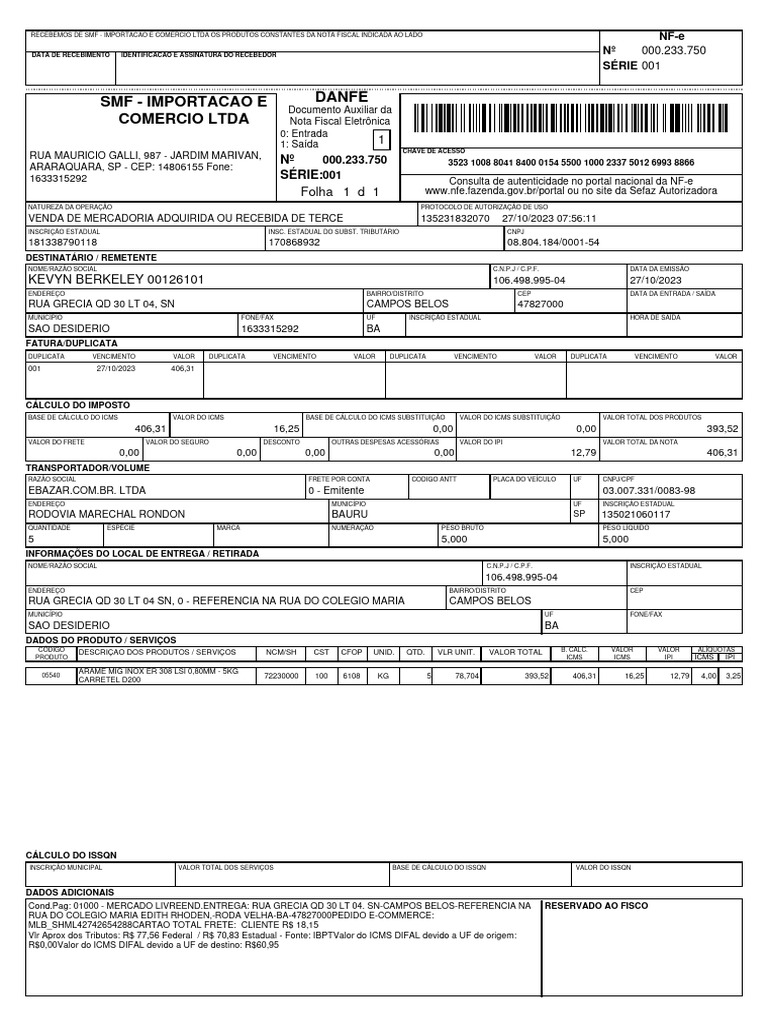 SMF - IMPORTACAO E DANFE