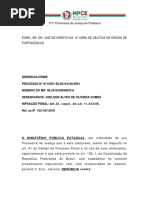 O Ministério Público por seu representante em ofício nesta Comarca ofereceu