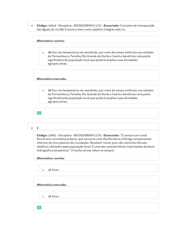Código: 25481 - Disciplina - BIOGEOGRAFIA (170) - Enunciado: "É sempre um canal