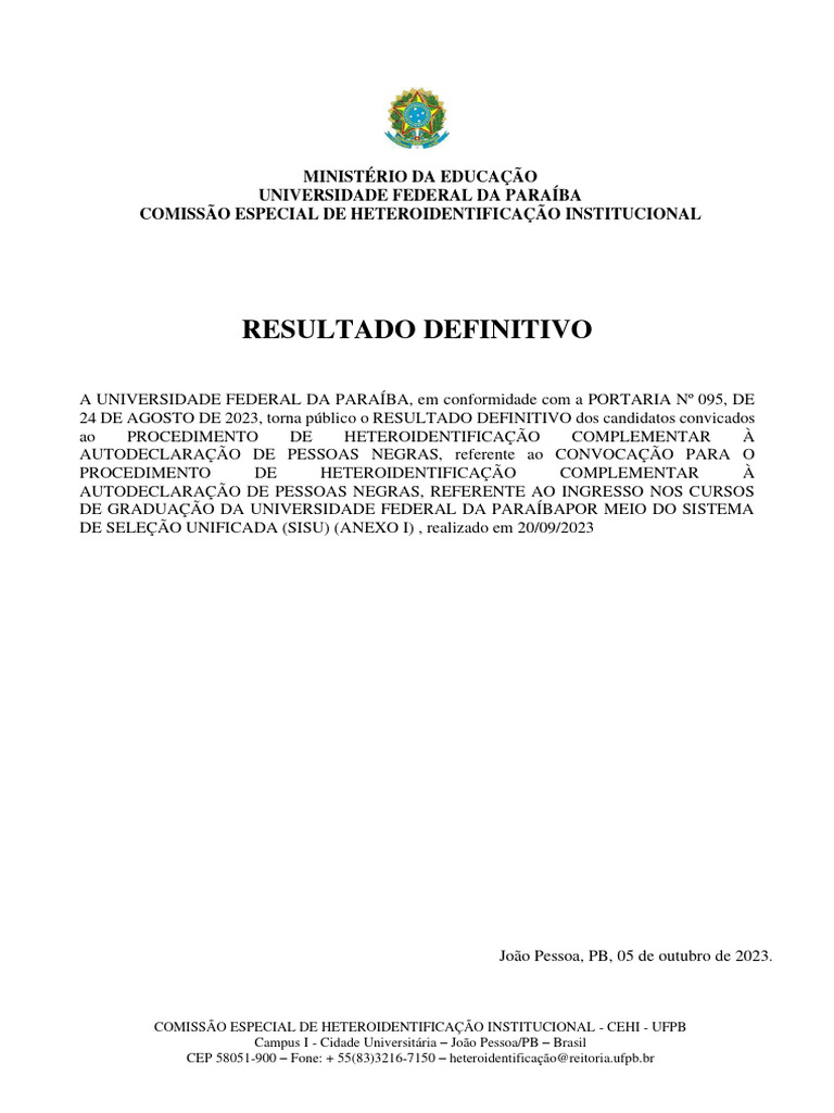 CEP 58051-900 – Fone: + 55(83)3216-7150 – heteroidentificação@[Link]